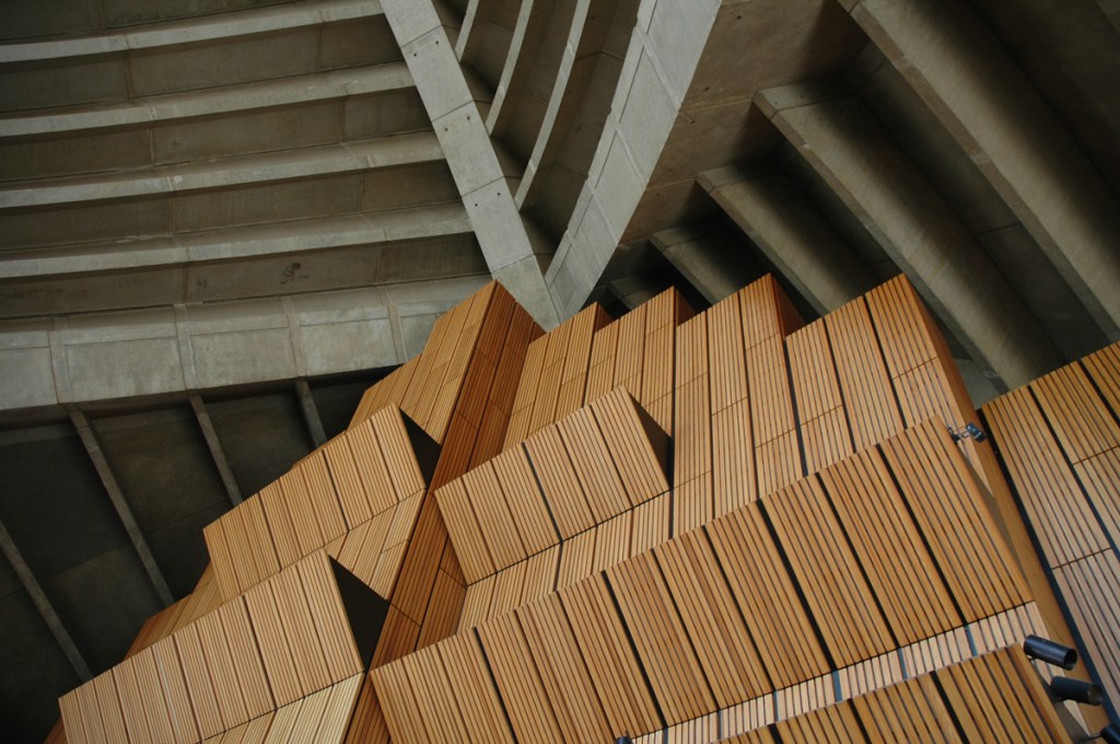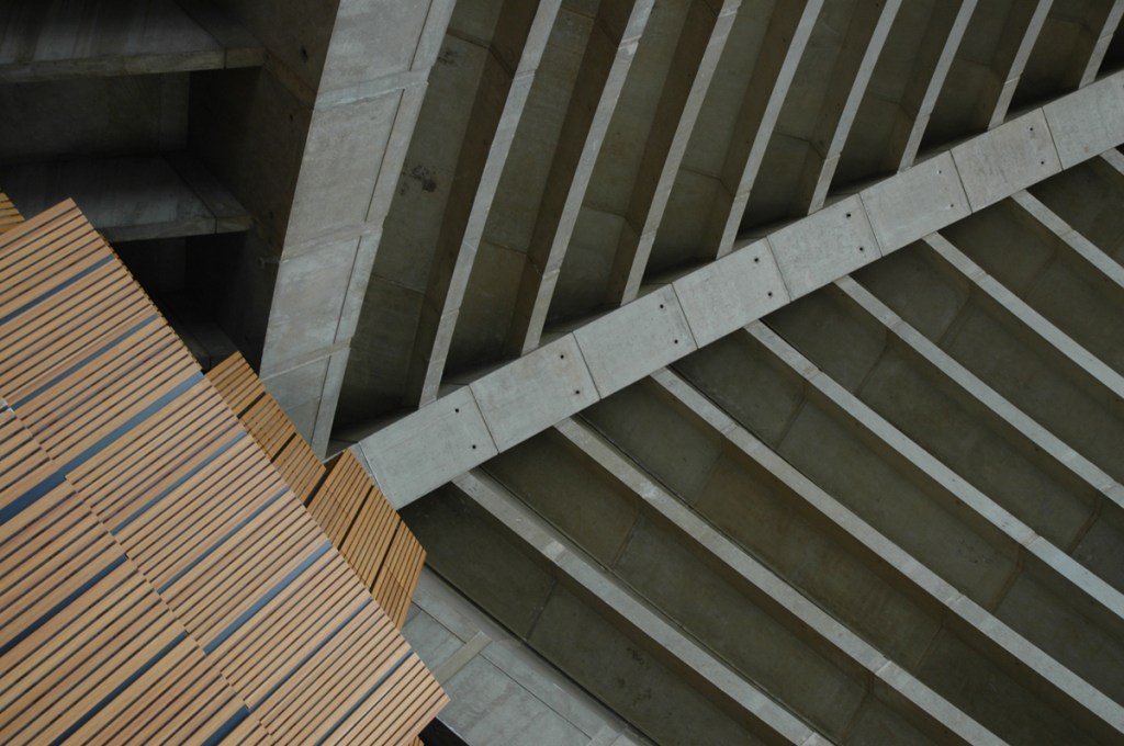 Recognise it? No? Perhaps not surprising, as most photographs you see are of the spectacular exterior, but the interior is just as interesting, and (speaking as an engineer) it is nice to see that the concrete segments used to create the unique shape of the building are visible.