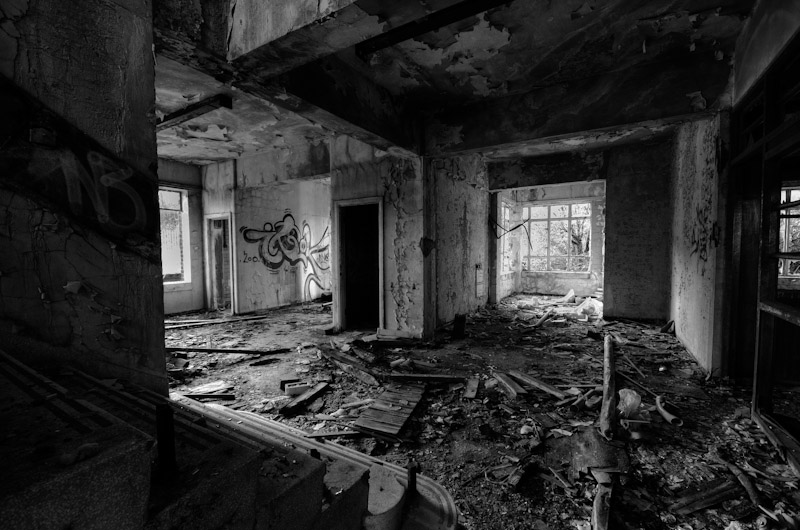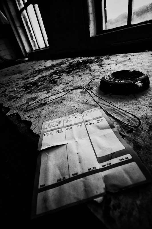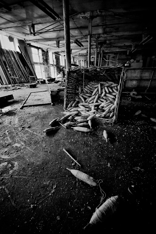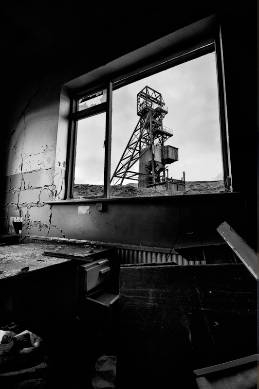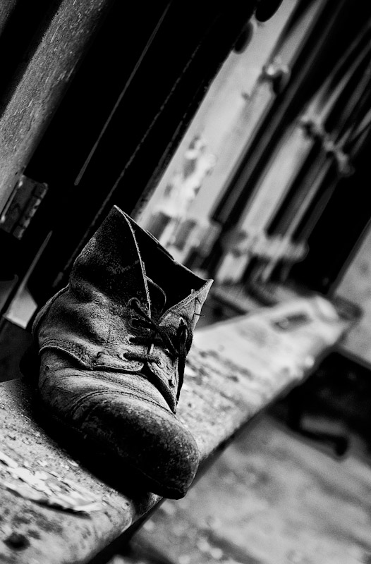 I like the use of existing structures in the framing of some of the shots, especially the one of the shaft headframe through the window. Another favourite of mine is the (obligatory!) shot of the discarded item of footwear – I like the lighting and textures and the dynamic oblique angle.