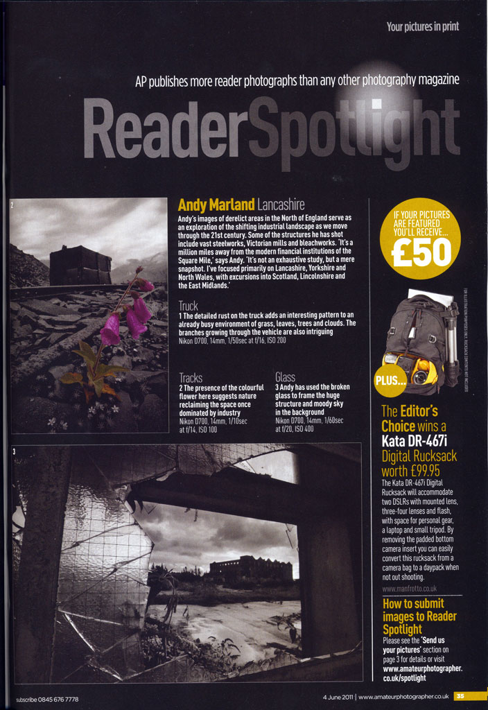May has been a good month, and the third bit of good news was today when I picked up Amateur Photographer (Saturday 4th June Edition) to see my pictures had been printed in Reader Spotlight, and had been chosen for ‘Editors Choice’! I don’t always buy the magazine, but if I’m out and about I’ll pick it up – good job I did as they didn’t tell me in advance this time round.