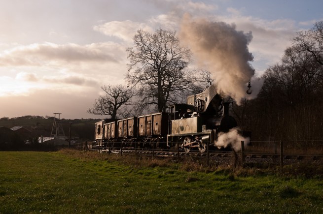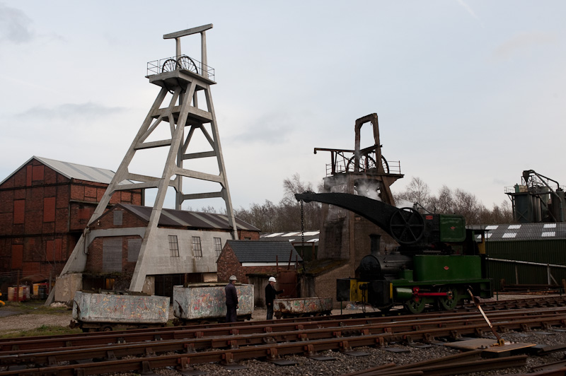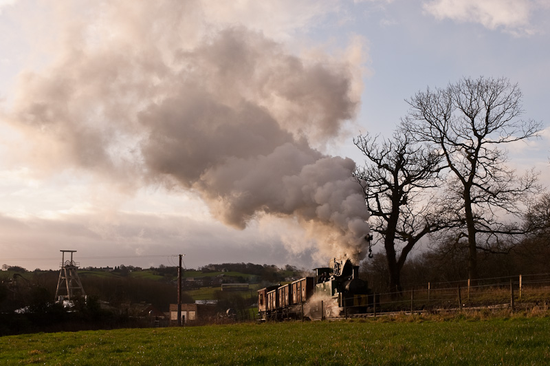 Like most collieries, the mine was served by a railway to provide a link to the mainline and in recent years, the Foxfield railway has managed to relay the line to the colliery. Although they are not yet operating passenger trains to the site, they do operate demonstration coal trains at their galas, as the gradient up the bank from the colliery is the steepest adhesion worked line in Britain (i.e. it doesn’t have a rack like the Snowdon mountain railway). And having seen the line, I can confirm that this is a surprisingly steep hill, and requires an engine to work hard, which is this was the venue for the latest photo charter I attended.