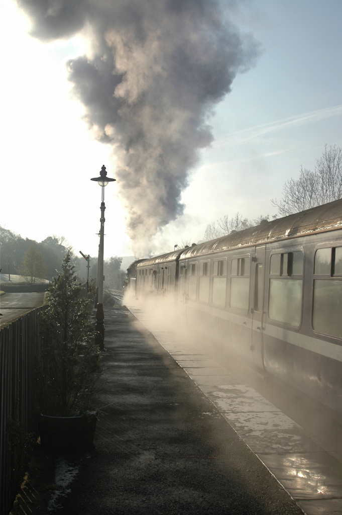 East Lancashire Railway seems to offer a great many photo opportunities. I love those old steam trains. The photograph is delightful being backlit and with the dynamic steam puffing into the sky. I also like the limited colour range.