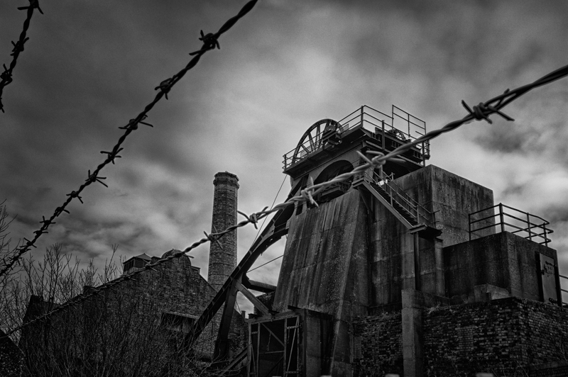 I composed it with the barbed wire prominent in the scene, as being a child of the 80’s, I have vivid memories of the strife and conflict that was the miners strike, even though the coal mines were long gone in the area I grew up in. I remember seeing a photo taken in the 70’s of the courthouse in Belfast, and it was taken through barbed wire, almost like the place was under siege. Pleasley is quiet now, as is the British mining industry, but the barbed wire and headgear are both powerful symbols, especially when in the same frame.