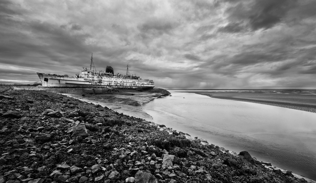 I was fortunate that on my visit, the tide was low, so it exposed the sandbank on the right hand side of the frame, thus providing an element of balance to the image. But the inclusion of the estuary provides a little more context to the ship to other photographs I took on the day, hence my title ‘High and Dry’.