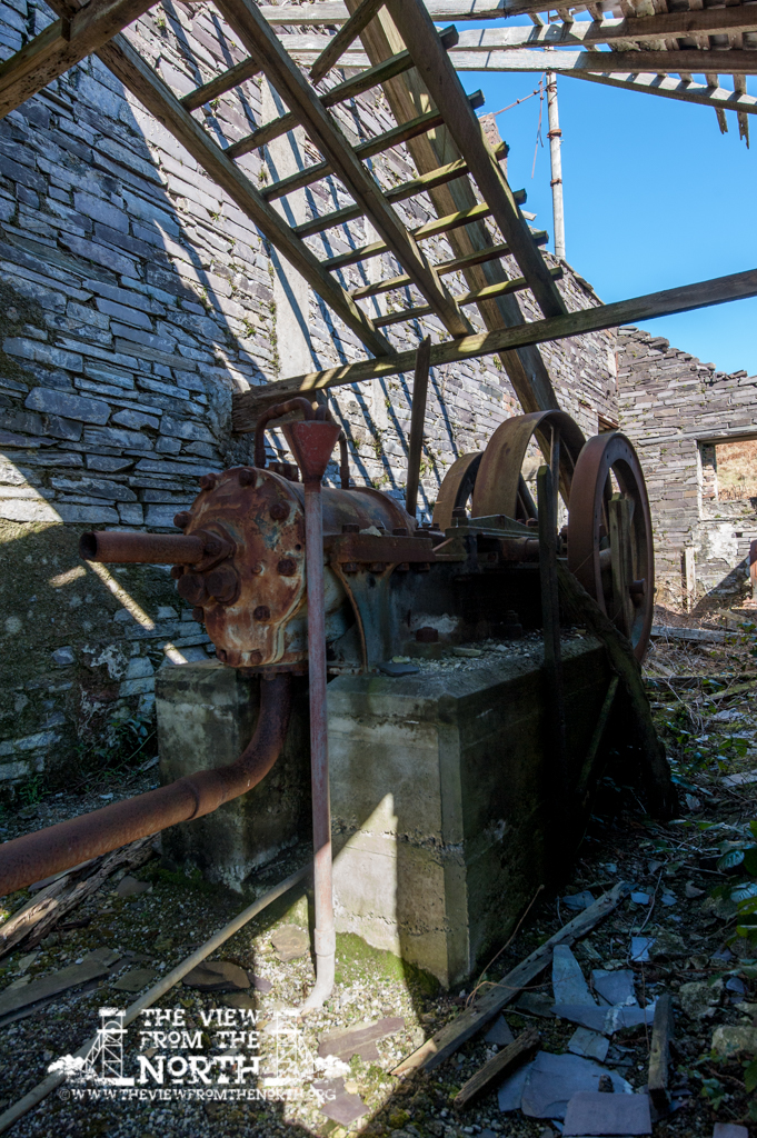 Yet another abandoned compressor. There seems to be a few of these lying round here and other North Wales quarries,Β and it’s one of those peculiarities of the slate industry that they weren’t all cut up for scrap when the place closed. I can understand maybe somewhere as inaccessible as Dinorwic, but less so here.