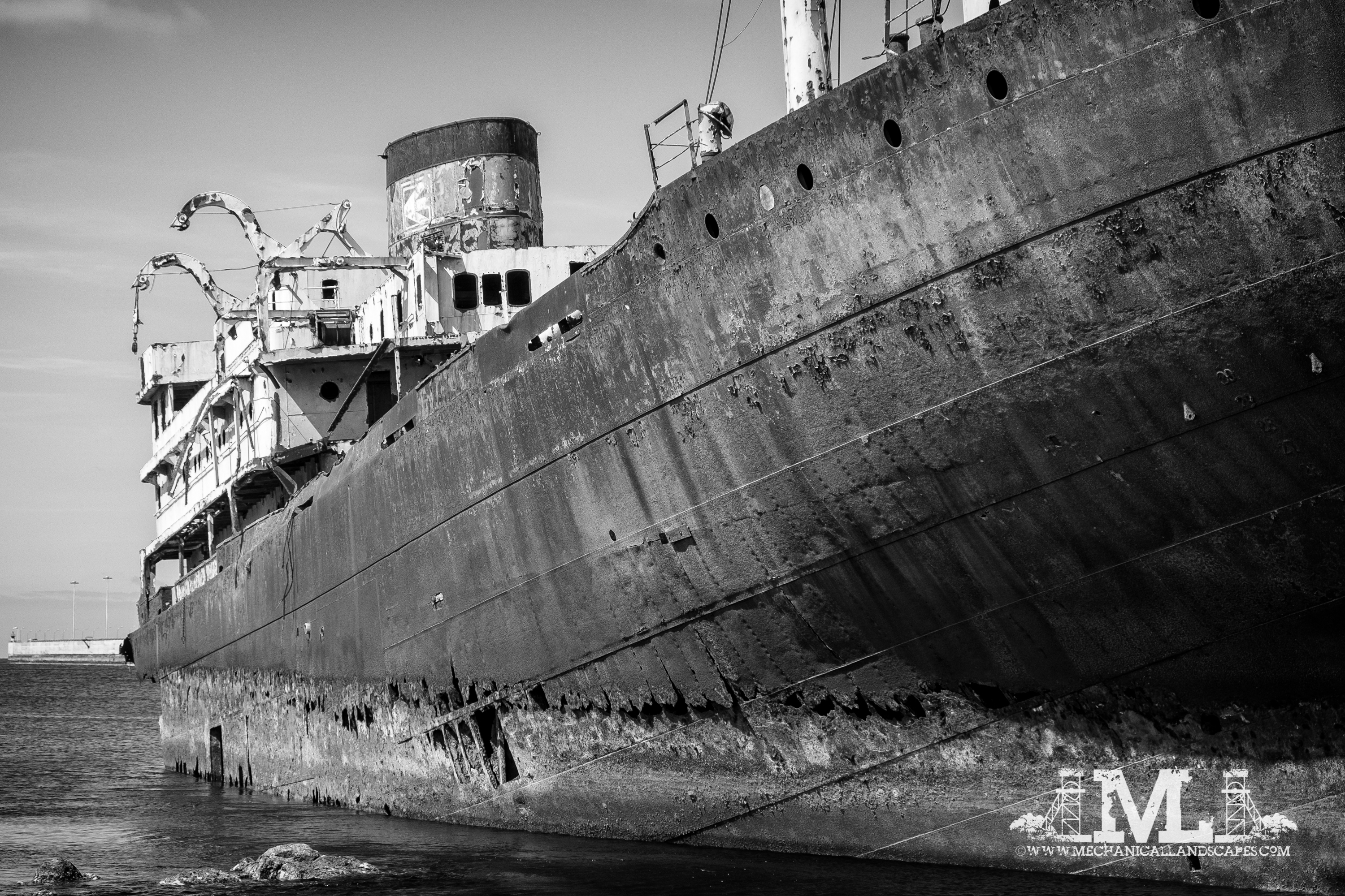 I deliberately chopped the stern off the first image to emphasise the wedge shape of the ships remains, and the second image works equally well in colour or monochrome. That’s the beauty of monochrome, the entire nature of the image changes, as the colour is removed the emphasis becomes more one textures, lines, shapes and tones.