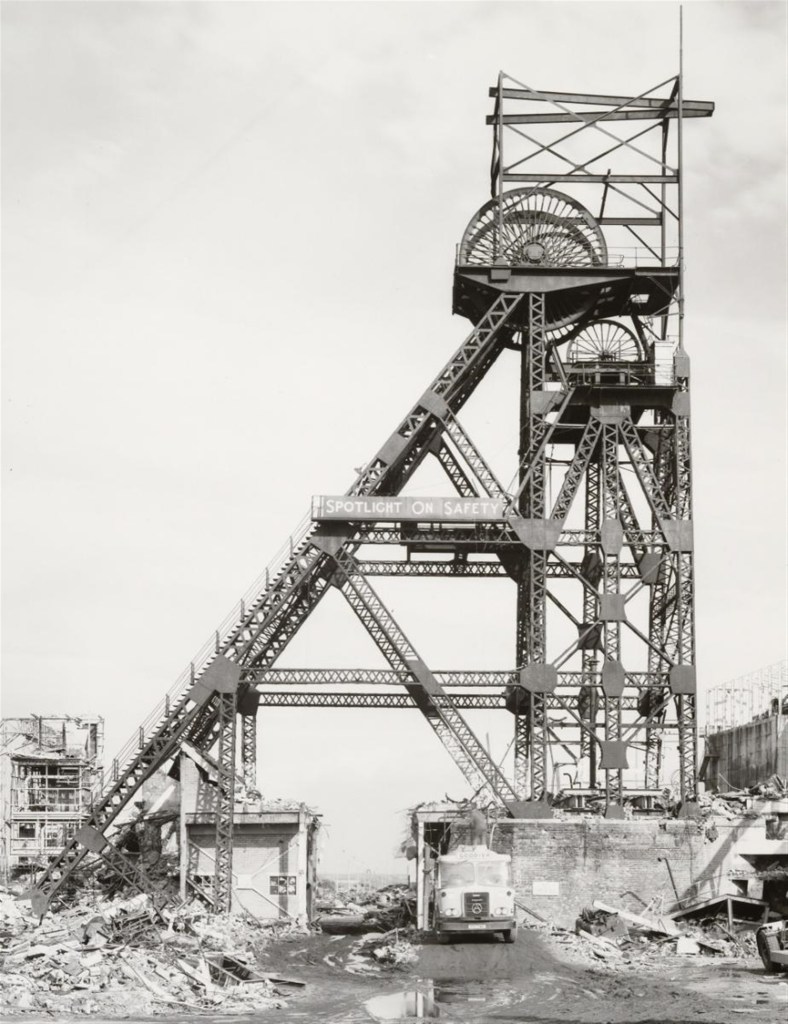 Interestingly, I saw the above photograph at the Bernd and Hilla Becher exhibition at Cardiff earlier this year. Demolition was clearly well advanced by this point, although it appears to have been dragging on as this photo from 1970 shows demolition of the surface buildings and the other headgear well underway. A better view of the full extent of the site can be seen in this aerial photograph: