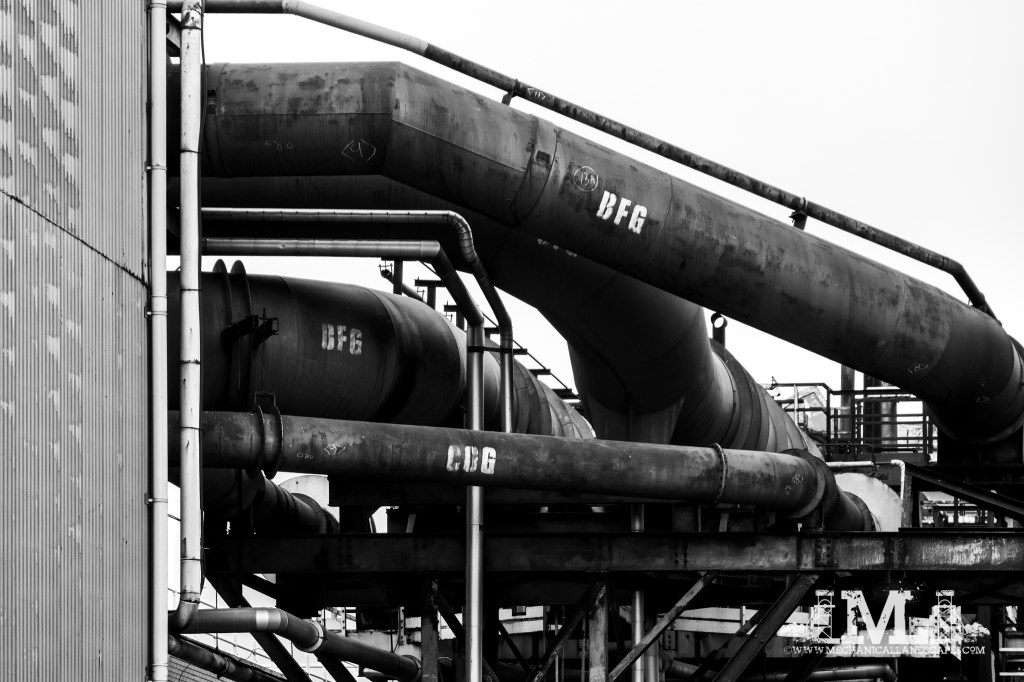 Beyond the basics of iron making, I’ve very little clue as to what else goes on so have no idea what these miles of pipework are for. However, I did find them fascinating nonetheless. I imagine some may be for water – steel making uses vast amounts of water (10 tons of water for every ton of steel), but more likely they are for gases.