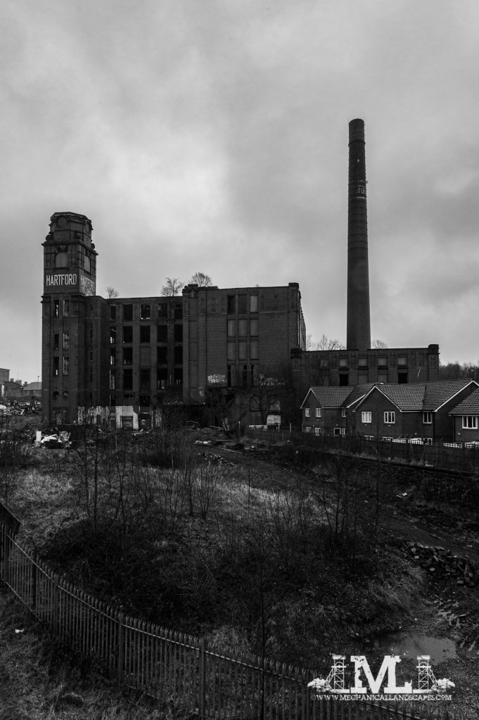 Beyond that though, the scene tells a different story to the one I took last time. The church was built in 1844, the mill was built in 1907, and the Rountree House flats in 1968, so about 62 year intervals between their respective constructions. The church was closed in 1982 due to a shrinking congregation, possibly due to the influx of south Asian migrants in the area to work in the local mills who were more likely to be of the Muslim or Hindu faith than Christian. And in the background to the mill is the new housing that is being built to replace the rows of Victorian terraced housing that has been cleared away over the past fifteen years.