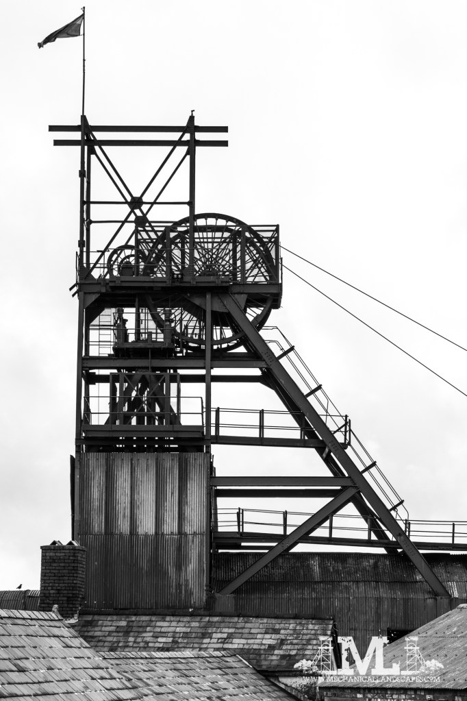 Big Pit was my last port of call as it was the most easterly pit and therefore – technically – on the way home. It’s the home of the Welsh Mining Museum so like all museums is free to enter, but they do charge £5 to park so regard that as an entry fee of sorts. It’s not the biggest of pits, with only one smallish headgear, but it’s more or less all there. I suppose that’s the problem with preserving a large pit – there’s just too much to preserve and maintain, witness to that would be the sorry state of Chatterley Whitfield, which although once a mining museum has been shut for 30 or so years and is arguably in a state of irreversible decline due to the enormous cost of restoring it. So, it seems to be that a small pit*, like Caphouse Colliery which is now the English National Mining Museum, is easier and cheaper (relatively speaking) to run than a very large pit and like Caphouse, you can also go underground at Big Pit. As in properly underground, down the 300ft shaft in the cage to be given a tour by an ex miner of some of the tunnels. Although it’s no longer extracting coal it’s still classified as a coal mine by the Coal Authority and has to operate like one. Hence, there are restrictions on what can but taken down (nothing with batteries in, so no cameras, watches, car keys, etc) and the mine is still monitored for gas. Indeed, the mine was – apparently – shut for a day before the week previous due to a change in weather resulting since a drop in air pressure, which created unfavourable conditions underground.