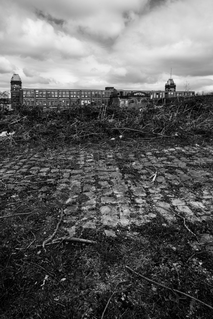 Hole House Mill was a typical collection of single storey weaving sheds of which there were many in Blackburn, and it backed onto the canal. I think it was last used by a metal pressing company who made things like fuel tanks for Transits, but I never photographed it as I don’t find these big featureless sheds easy or interesting to photograph. But it’s clearance has opened up views of Imperial Mill that never existed before (Hole House Mill predated Imperial by a good few years).
