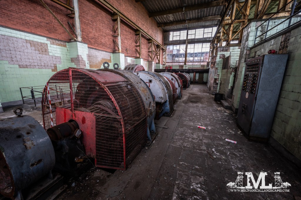There were three main areas visited – the winding engine hall, the adjacent power house and the heapstead under the upcast. The winding engine hall is now used as an events venue and has a large collection of mining memorabilia which was interesting but not what I wanted to photograph. The power house was more my cup of tea as it is in an unrestored state and the large windows on three sides offered some great light.