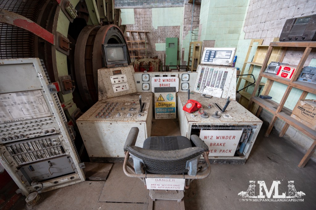 I didn’t take many photos in the winding hall, it’s been turned into a museum of sorts and is also used as an events venue. The control desks for each of the winders have been relocated to positions alongside the winding engines to open up the floorspace but have been left in a suitably rustic condition.